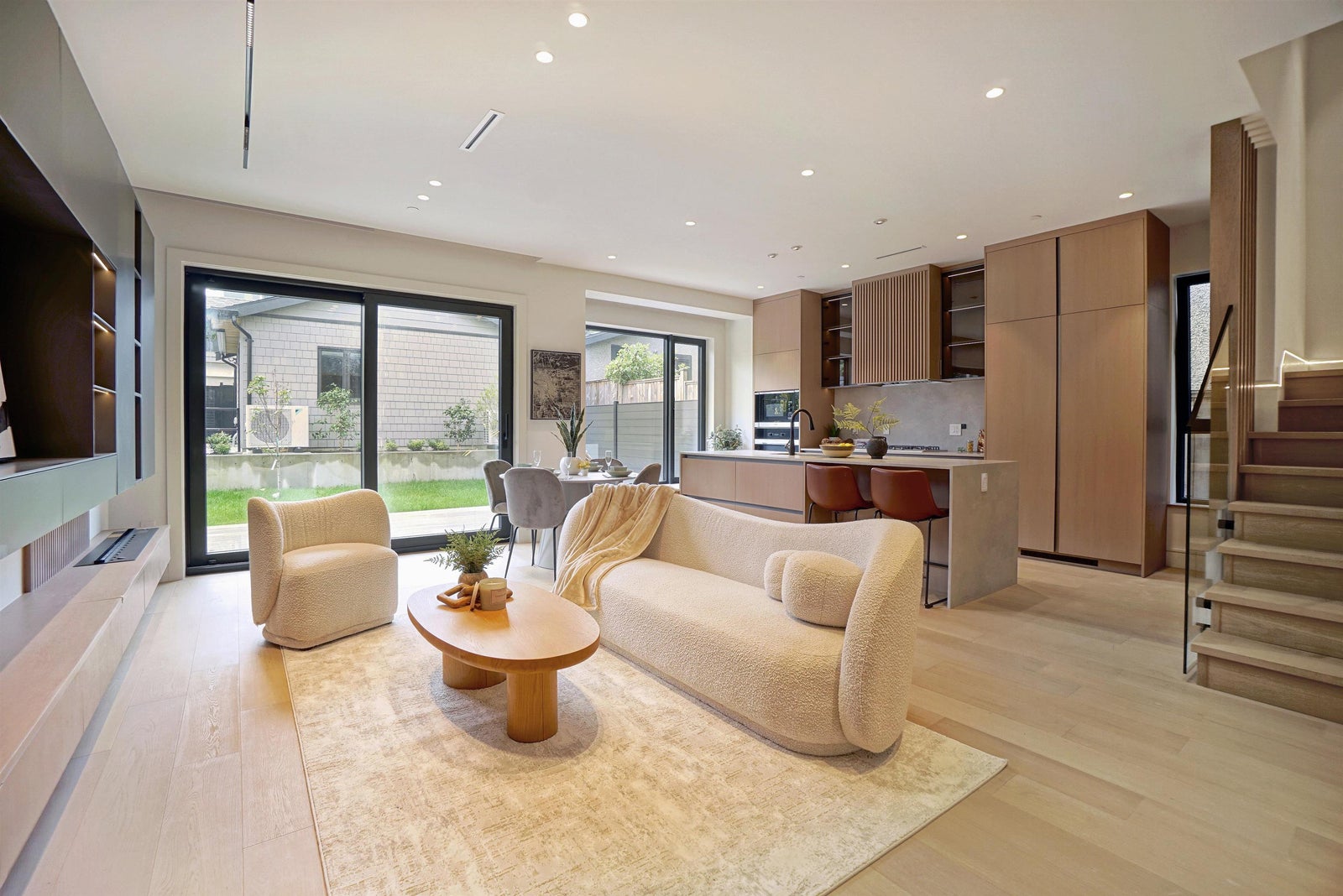 Brand-new luxury duplex in prime Kitsilano! This beautifully crafted home features 10' ceilings, triple-glazed aluminum windows and doors, premium custom millwork, and a full Miele appliance package. Comfort is provided by Daikin multi-zone A/C and heat pumps on every floor. The main level offers motorized blinds, while Techwood and metal siding add durability and efficiency. Oversized sliding doors open to a sunny deck and landscaped private yard for seamless indoor-outdoor living. A smart home system controls lighting, speakers, blinds, doorbell, and cameras. Additional highlights include an EV-ready garage, crawl space storage, fingerprint-lock gate, barrier-free showers, and in-floor heating in all bathrooms. School catchments: Carnarvon Elementary & Kitsilano Secondary.