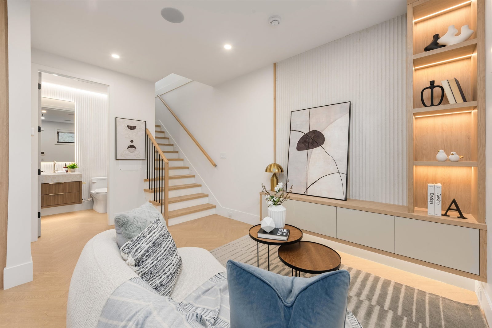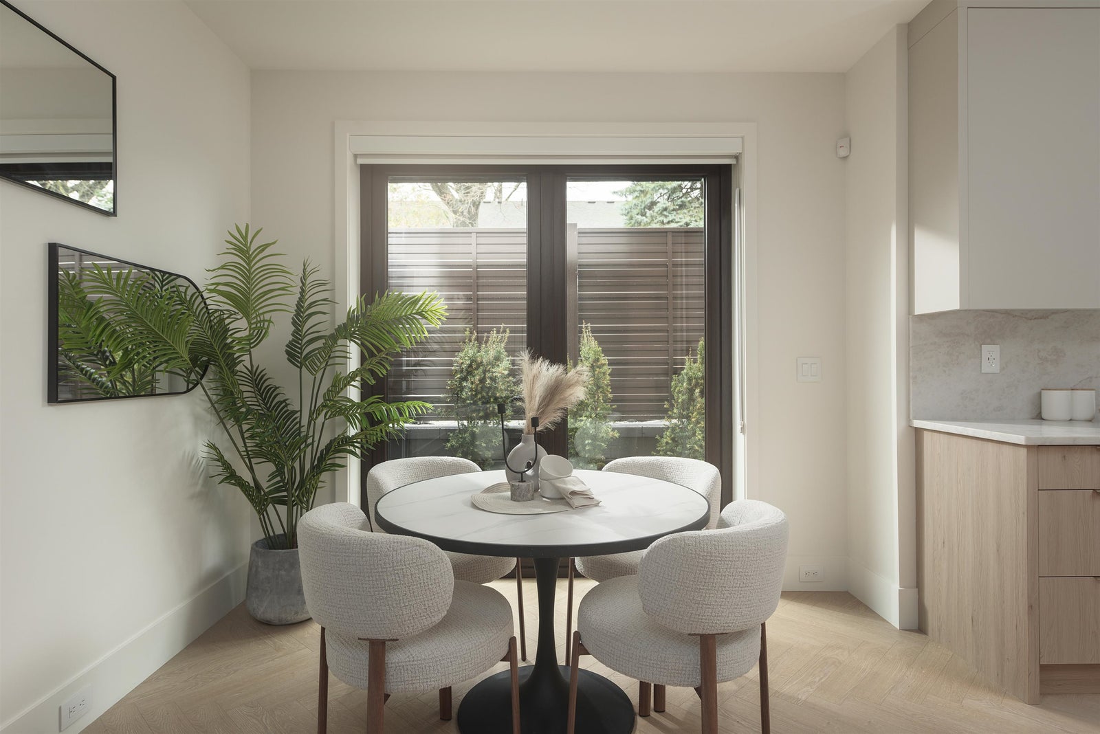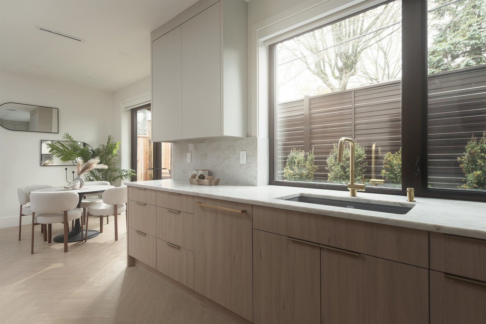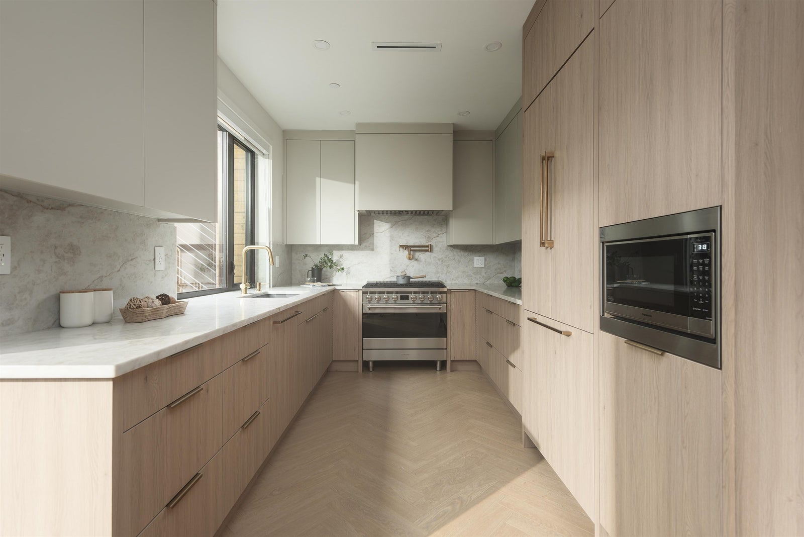 Welcome to Mira at Trout Lake. This perfect 2 level WEST facing duplex with stunning kitchen features herringbone wood flooring on the main, wide plank oak above, fluted limestone feature walls, over-height ceilings, arched passages, and custom millwork. Kitchen equipped with integrated Smeg appliances, gas cooking, pot filler, deep Blanco sinks, and quartz surfaces. Spa-inspired bathrooms include floating vanities, frameless glass shower, and large format tile. Complete with A/C, in-suite ventilation, acoustic windows, built-in speakers, security, and 2-5-10 warranty.